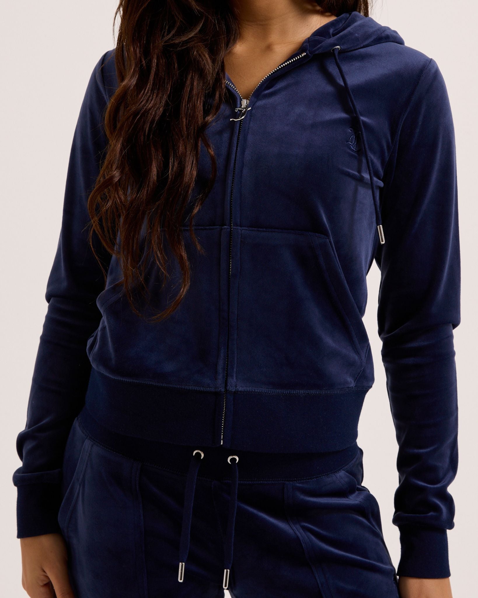 Zip through hoodie in classic velour. Slim fit, with kangaroo pockets and lined hood, this core hoodie features a statement gothic J zip pull and is finished with a tonal embroidered JC logo at the chest.